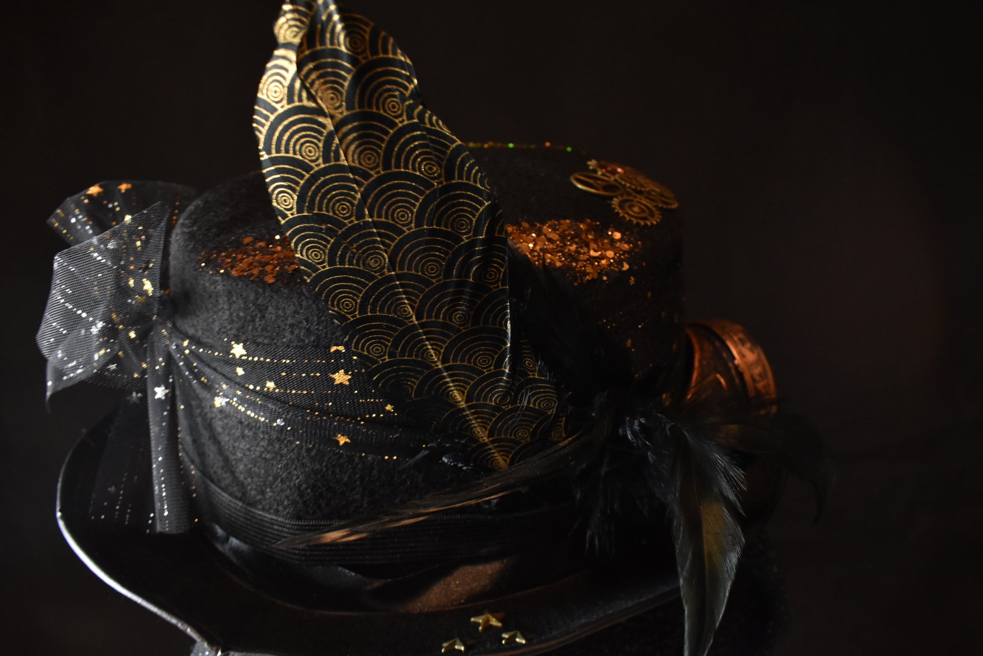 Chapeau steampunk horloge doré